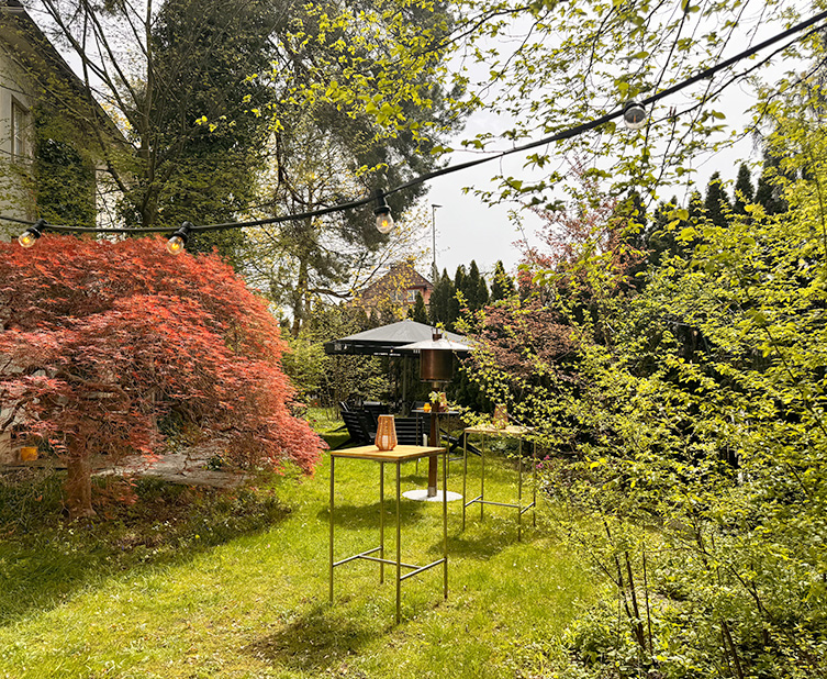 Mit Platz für kleinere Gesellschaften (bis ca. 40 Personen) eignet sich der Garten auch ideal für private Apéros, kleine Geburtstagsrunden oder Meetings unter freiem Himmel.